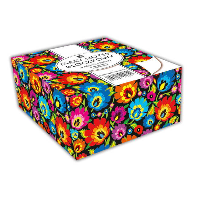 Bloc-note, agrémenté sur la tranche de motifs folkloriques polonais.